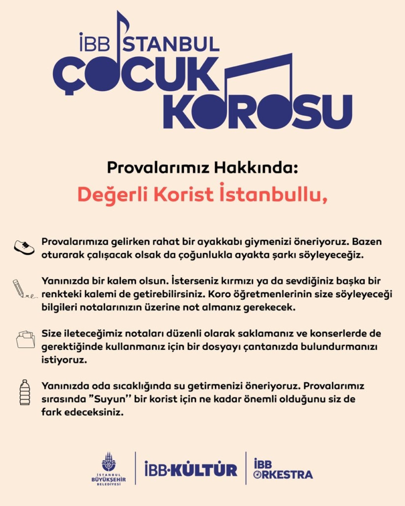 İBB İstanbul Çocuk Korosu olarak aramıza katılmanızdan dolayı çok mutluyuz. Birikte müzik yapacak, şarkılar söyleyecek ve çeşitli etkinlikleri anılarımıza katacağız.
