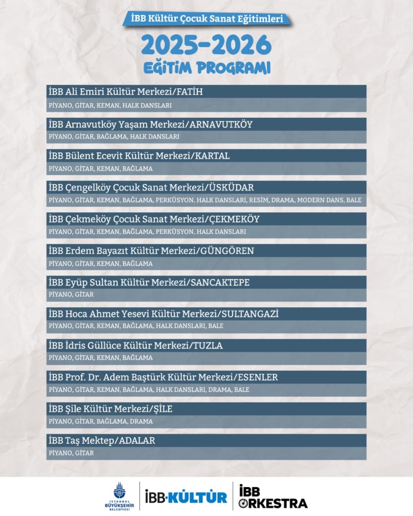 İBB KÜLTÜR ÇOCUK SANAT EĞİTİMLERİ 2025 – 2026 EĞİTİM PROGRAMI