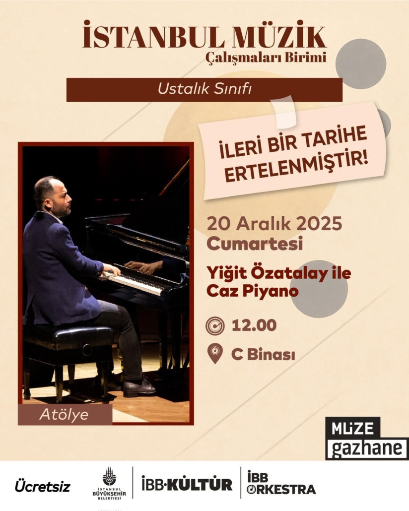 Başvuru için: https://forms.ibb.gov.tr/kultur/caz-piyano-ustalik-sinifi-yigit-ozatalay